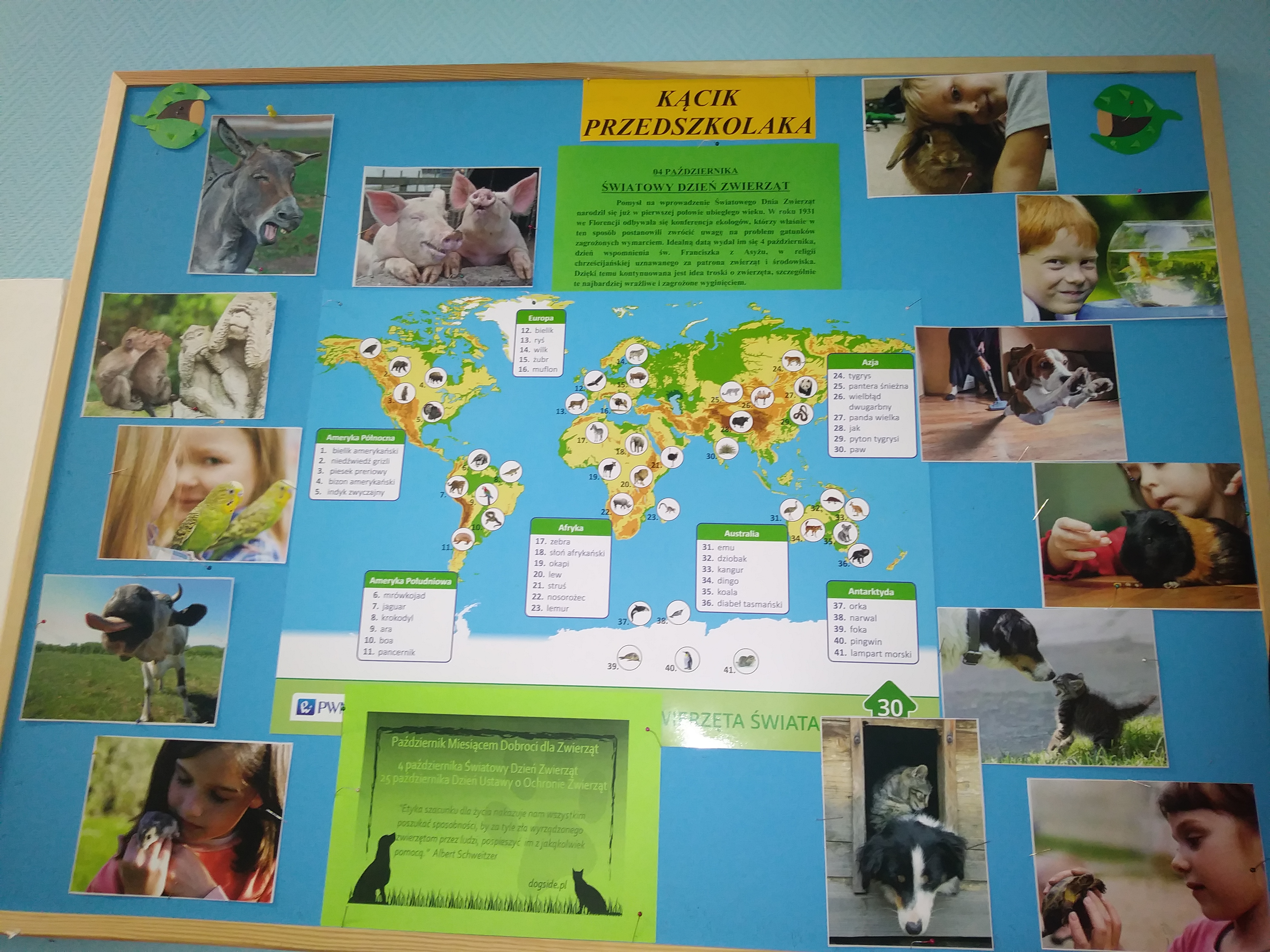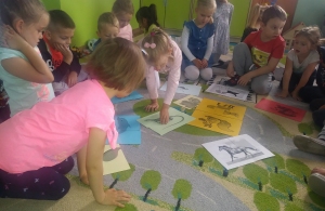 "Dzień Zwierząt" - zajęcia w grupie młodszej "Papużki" i w grupie starszej "Kangurki".