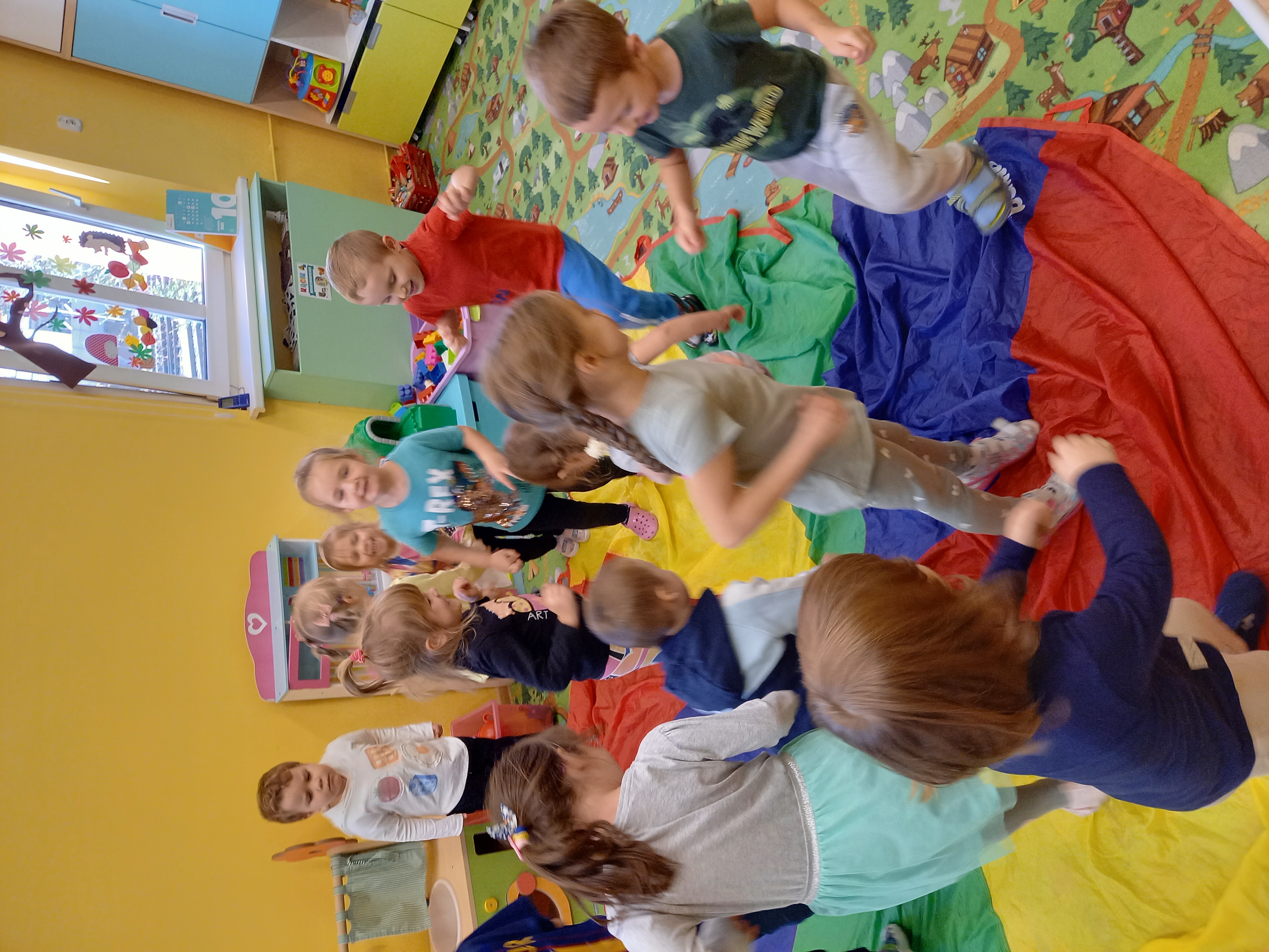 Zabawy integrujące grupę "Niedźwiadków"," Bystrzaków" i" Myślicieli"